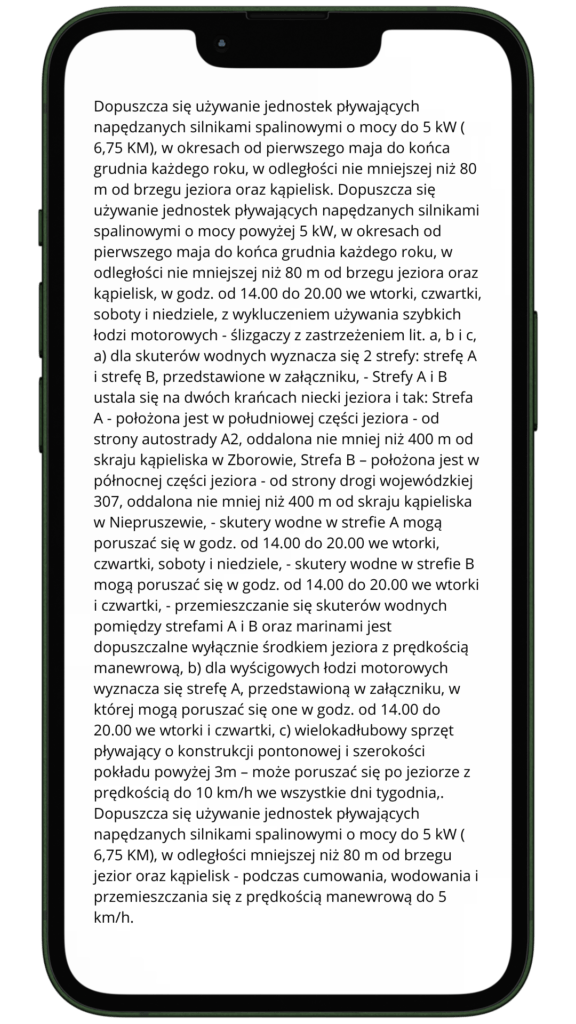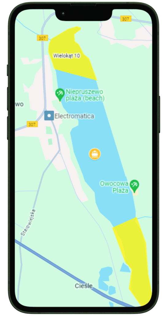 Informacje o lokalizacji setek jezior udostępnionych dla jednostek pływających o napędzie spalinowym.
